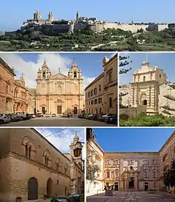 ![]() From top: Skyline, Cathedral, Main Gate, Palazzo Santa Sofia, Palazzo Vilhena | |