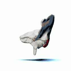 Left استخوان گیجگاهی, muscle attachments shown in red lines