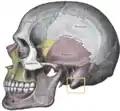 ![]() زائده پستانکی در استخوان گیجگاهی سر به رنگ قرمز نشان داده شده است. | |