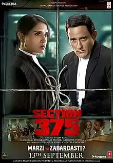 بخش ۳۷۵ (به انگلیسی: Section 375) فیلمی محصول سال ۲۰۱۹ و به کارگردانی آجای باهل است. در این فیلم بازیگرانی همچون آکشای کانا، ریچا چادا، میرا چوپرا، کیشور کادام و ساندیا مریدول ایفای نقش کردهاند.