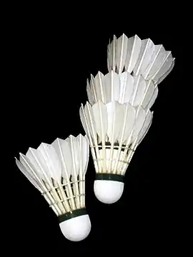 - امروزه برخی از انواع توپهای بدمینتون از پلاستیک درست میشود اما توپهایی که در رقابتهای جدی و رسمی استفاده میشوند از ۱۶ پر واقعی درست شدهاند. کارشناسان ادعا میکنند بهترین توپهای موجود، آنهایی هستند که از بال چپ غاز برای قسمت پردار توپ استفاده شدهاست.