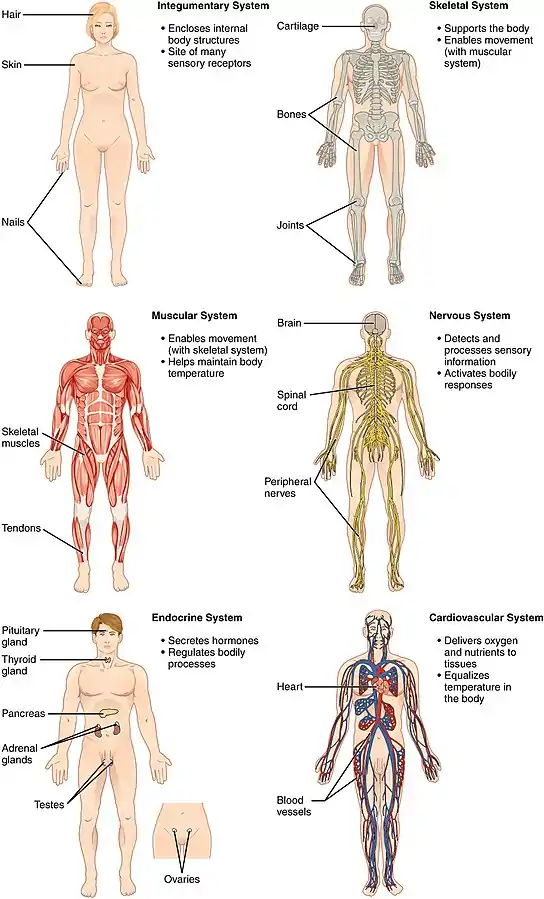 بدن انسان از سیستمهای تعاملی بسیاری تشکیل شدهاست. هر یک از سیستمها به حفظ هومئوستاز خود، دیگر سیستمها و کل بدن کمک میکنند. هر سیستم از یک یا چند اندام که مجموعهای از بافتهای عملکردی است، تشکیل شدهاست. سیستمها به تنهایی کار نمیکنند و سلامتی فرد بستگی به سلامتی تمام سیستمهای تعاملی بدن دارد. سیستمهای تعاملی بدن با نامهای مشترکی معرفی میشوند مثل سیستم عصبی و سیستم غده درونریز که باهم سیستم غددی عصبی نامیده میشوند.