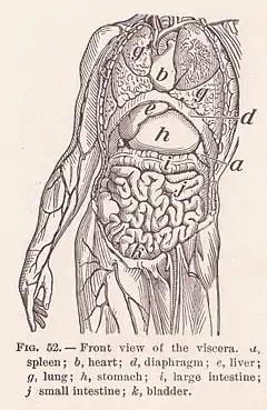 ![]() | سیستم گوارشی از دهان شامل زبان و دندانها؛ مری، معده، لولههای گوارشی (دستگاه گوارش، روده باریک و روده بزرگ و راست روده) همچنین کبد، پانکراس، کیسه صفرا و غدد بزاقی تشکیل شدهاست. این سیستم غذا را به قطعات کوچک، مواد مغذی، مولکولهای غیر سمی برای توزیع به تمام بافتهای بدن تبدیل میکند و مواد باقیمانده بدون استفاده را دفع میکند. | پزشکی گوارشی | فیزیولوژی گوارشی |