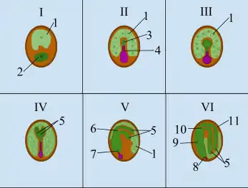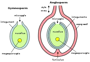 - نوسِلوس (nucellus)، بقایای بزرگهاگدان و ناحیه اصلی تخمک که در آن مگاگامتوفیت ایجاد میشود.