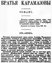 ![]() اولین صفحهٔ چاپ اول برادران کارامازوف | |