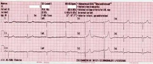 نوار قلبی بیمار دارای برادی کاردی سینوسی. ۴۵ ضربان در دقیقه