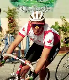 ![]() Walton riding in the Canadian road champion jersey for 7-Eleven in the 1988 Tour de White Rock | ||||||||||||||||||||||