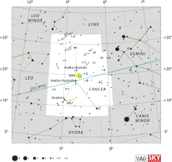 برج اسد در امتداد دائرةالبروج (قوس آبی) | |