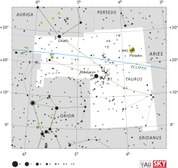 ![]() خط سیر برج جوزا در ستارگان صورت فلکی ثور |