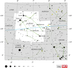 برج سرطان در امتداد دایرةالبروج (قوس آبی) | |