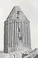 نگاره قدیمی مربوط به برج علیآباد که در آن بخشی از برج خراب شدهاست