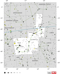 برج قوس در امتداد دائرةالبروج (قوس آبی) | |
