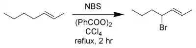 بهترین عملکرد برای این واکنش با ان-بروموسوکینیمید در حلال کربن تتراکلرید حاصل میشود.[3][4]