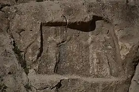 نام برم دلک از عبارت «بهرامِ دوندلک» از فارسی میانه گرفته شده که به معنی «قلب بهرام» است. در نقش برجسته این اثر بهرام دوم در حال تقدیم یک گل نیلوفر به همسرش، شاپوردختک است.