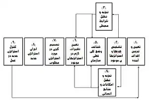 کتاب «برنامهریزی استراتژیک و کاربرد آن» فرایند برنامهریزی استراتژیک را به صورت ذیل نمایش دادهاست: