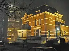 یک ساختمان اداری که با لامپهای بخار سدیم نورپردازی شدهاست و نور بسیار زیادی به داخل خانههای همسایه افتاده و باعث آزار آنها میگردد.