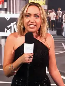![]() سایرس به عنوان مجری فرش قرمز جوایز موزیک ویدئوی امتیوی ۲۰۱۵ | |