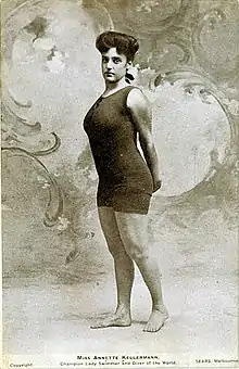 در اوایل دهه ۱۹۰۰ در برخی از مناطق ایالات متحده آمریکا از زنان انتظار میرفت که هنگام شنا لباس سبز و شلوار گشاد تا مچ پا بپوشند. در سال ۱۹۰۷ آنت کلرمن یک شناگر استرالیایی برای پوشیدن لباس شنای یک تکه که نشان تجاری آن متعلق به خودش بود، در سواحل بوستون به جرم بیشرمی در مکان عمومی دستگیر شد. پس از اعتراض عمومی به بازداشت این پوشش در ۱۹۱۰ به سبک رایج و پذیرفته شده لباس شنا تبدیل شد.[3]