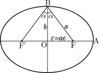 برونمرکزی زاویهای. توجه شود که OA=BF=a.