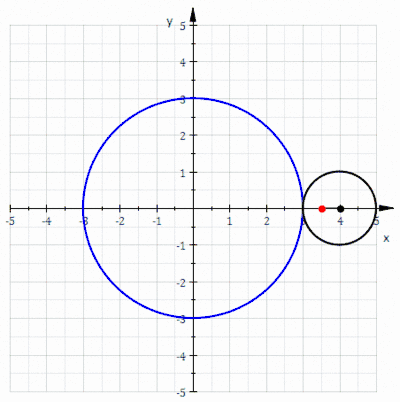 خم قرمزرنگ، یک برونچرخهزاد است که با چرخش دایرهٔ کوچک سیاهرنگ در درون محیط دایرهٔ بزرگ آبیرنگ پدید میآید. (پارامترهای آن عبارتند از: R = 3, r = 1, d = ۱/۲).