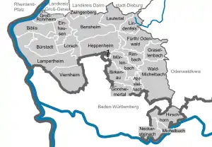 شهرکها and municipalities in Kreis Bergstraße
