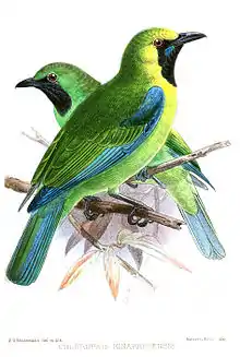 - مشارکتکنندگان ویکیپدیا. «Bornean leafbird». در دانشنامهٔ ویکیپدیای انگلیسی، بازبینیشده در ۳۰ نوامبر ۲۰۱۹.