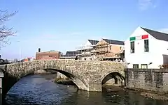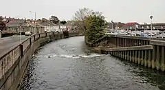 ![]() The Ogmore River. To the left of the river is Quarella Road; to the right, a superstore and car park | |