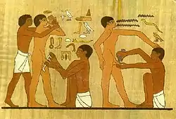 خاستگاه جغرافیایی رسم قطع آلت تناسلی را، درهٔ رود نیل در مصر باستان میدانند. گمان بر این است که این رسمها بعدها به نواحی اطراف چون حوزه رود نیل، و شمال شرق و غرب آفریقا گسترش یافتهاست.[3] قدیمیترین شاهد موجود مومیاییهایی هستند که به ۲۰۰ سال قبل از میلاد بازمیگرداند و آثار قطع کلیتوریس در آنها پیداست.[23] مورخ یونانی هرودوت وجود این رسم را در بین مصریان در سال پنجم پیش از میلاد گزارش کردهاست. هرودوت همچنین گزارش میکند که رومیها، اتیوپیها، و فنیقیها نیز قطع دستگاه تناسلی زنان را انجام میدهند. جغرافیدانان یونانی استرابو آن را در بین مصریان در حدود سال ۲۵ قبل از میلاد گزارش میکند. این رسم هدفش جلوگیری از بیقاعدگی جنسی نمیبود، بلکه نوعی مناسکگذر به حساب میآمدهاست که ریشه آن در افسانههای مربوط به مصر باستان و دیگر مردمان آفریقا بودهاست. این مردمان بر این اعتقاد بودند که ارواح خدایان و انسانها دوجنسی میباشند. این ارواح ویژگیهای دوجنسی خود را روی ارگانهای تناسلی تصویر میکنند. بدین گونه، زنانگی مرد در پوست روی اندام جنسی مرد، و روح مردانه زن در کلیتوریس او است. برش این بخشها عملاً بخش زنی مرد را میزداید و او را به یک مرد کامل تبدیل میکند؛ و بخش مردی زن را میزداید و او را به یک زن کامل تبدیل میکند. امروزه هنوز زنان مصری به زنانی که ختنه نشدهاند با دید تحقیر نگریسته و میگویند: «تو مثل یک مرد هستی».[9]