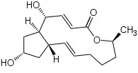 دیگر نامها γ4- Dihydroxy- 2-(6-hydroxy-1-heptenyl)- 4-cyclopentanecrotonic acid λ-lactone | |