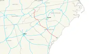 | I-81 in کینگزپرت، تنسی I‑40 / I‑240 in اشویل، کارولینای شمالی I‑85 near اسپارتنبورگ، کارولینای جنوبی I‑385 near لرنز، کارولینای جنوبی I‑20 near کلمبیا، کارولینای جنوبی I‑77 near کلمبیا، کارولینای جنوبی I‑95 near ارینجبرگ، کارولینای جنوبی | |