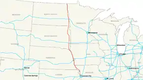 | I-80 in کونسیل بلوفس، آیووا I‑90 near سو فالز، داکوتای جنوبی I‑94 in فارگو، داکوتای شمالی | |