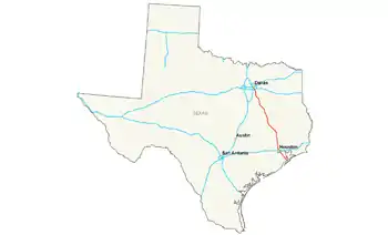 مسیر بزرگراه میانایالتی ۴۵ بر روی نقشه ایالت تکزاس.