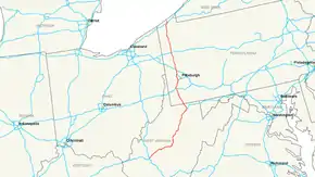 | I‑68 near مرگنتاون، ویرجینیای غربی I-70 in South Strabane Township, PA I-76 / Penna Turnpike in Warrendale, PA I-80 in Findley Township, PA I-90 in McKean, PA | |||||||