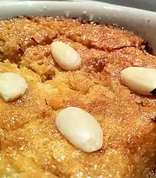بسبوسه یک کیک شیرین بومی مصر و سنتی خاورمیانهای است.[1] بسبوسه از از سمولینا یا فارینای پختهٔ آغشته شربت ساده درست میشود.[2] نارگیل نیز از افزودنیهای محبوب آن است. شربت همچنین ممکن است شامل آب گل پرتقال یا آب رز باشد.