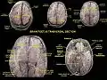 ![]() Scheme showing relations of the ventricles to the surface of the brain; oriented facing left. | |