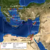 آنها سپس توجه خود را به قبرس معطوف کردند که مورد حمله آتنیها به رهبری کیمون آتنی قرار گرفت. اندکی پس از آن، درگیریها بین پارس و آتن به نام عهدنامه کالیاس متوقف شد.