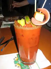 ![]() بلادی مری تزئینشده با لیمو، کرفس، زیتون، پنیر و کالباس که همراه با یخ سرو میشود | |