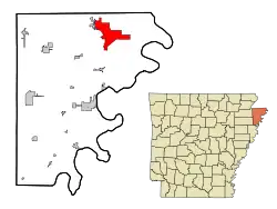 ![]() Location in Mississippi County and the state of آرکانزاس | |
