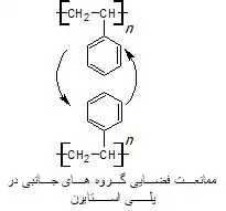 وجود گروه های جانبی سبب ممانعت در نزدیک شدن زنجیر ها به هم شده و باعث کاهش میزان کریستالیزاسیون می شود.به طور مثال گروه های حجیم در پلی استایرن سبب شده تا نزدیک شدن زنجیر ها امکان پذیر نباشد و این پلیمر ۱۰۰٪ آمورف می باشد.در حالی که پلی اتیلن دارای چنین گروهی نیست تا درصد بسیار بالایی کریستاله می شود.