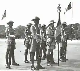 سربازان کنگویی در درگیریهای شرق آفریقا شرکت داشتند و نقش مهمی در بیرون راندن قوای ایتالیا از آفریقای شرقی ایتالیایی ایفا کردند[74] که البته ۵۰۰ نفر تلفات هم متحمل شدند.[75] حدود ۱۳٬۰۰۰ سرباز کنگویی در ارتش بریتانیا در نیجریه خدمت کردند.[75] دستههایی از سربازان کنگو نیز در خاورمیانه و برمه خدمت کردند.[75] در کل ۴۰٬۰۰۰ سرباز کنگویی در جنگ شرکت داشتند.[76] اما تبعیض نژادی آشکاری نیز وجود داشت، چون سیاه پوستان نمیتوانستند افسران جنگی شوند و همواره توسط سفید پوستان فرماندهی میشدند.[77]