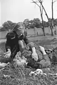 دختر لهستانی در کنار جسد خواهر ۱۴ سالهاش که در اثر بمباران کشته شدهاست