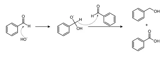 همچنین میتوان با استفاده از واکنش کانیزارو ی تقاطعی بنزوئیک اسید را از بنزالدهید ساخت که واکنش مربوط به آن را در زیر میبینید: