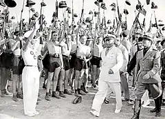 موسولینی و فاشیستها میخواستند که همزمان «انقلابی» و «محافظه کار» باقی بمانند؛[61][62] از آنجا که این ایده بسی متفاوت از حال و هوای سیاست آن زمان بود گاهی از آن با عنوان «راه سوم» یاد میشود.[63] فاشیستها بدست یکی از معتمدین موسولینی به نام دینو گراندی جوخههای مسلحی از کهنه سربازان را شکل دادند که پیراهن سیاهان (به ایتالیائی:Squadristi) نامیده شدند؛ با این هدف که نظم را با مشتی آهنین به خیابانهای ایتالیا بازگردانند. لباس سیاهان با کمونیستها، سوسیالیستها و آنارشیستها در شلوغی جمعیت و هنگامهٔ تظاهرات درافتادند؛ البته تمامی گروههای نامبرده نیز خود به جان یکدیگر میافتادند. حکومت ایتالیا اما کمتر در کار پیراهن سیاهان خلل ایجاد میکرد، تا حدودی بدین دلیل که تهدید احتمالی و هراس همگانی از یک انقلاب کمونیستی کشور را فرا گرفته بود. فاشیستها به سرعت رشد نمودند؛ طرف دو سال آنان خود را در کنگره ای در روم به عنوان حزب ملی فاشیست شکل دادند. در ۱۹۲۱ موسولینی برای اولین بار به مجلس راه یافت. از ۱۹۱۱ تا ۱۹۳۸ موسولینی روابط نامشروعی با مؤلف و آکادمیک یهودی به نام مارگریتا سارفاتی داشت؛ کسی که «مادر یهودی فاشیسم» لقب گرفت.[64]