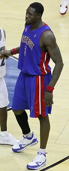 ![]() Wallace during his tenure with the دیترویت پیستونز، playing against the واشینگتن ویزاردز in November 2009. | |