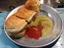 ![]() A typical Bun Kebab with ketchup and chutney | |