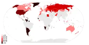 نود و نه درصد از مرگ و میر مادران در کشورهای در حال توسعه رخ میدهد و در ۲۵ سال اخیر، مرگ و میر مادران در جهان به ۴۴٪ کاهش یافتهاست.[9] از نظر آماری، احتمال زنده ماندن یک زن در دوران زایمان با وضعیت اقتصادی اجتماعی وی، دسترسی به مراقبتهای بهداشتی، جایی که او از لحاظ جغرافیایی و هنجارهای فرهنگی زندگی میکند، ارتباط نزدیکی دارد.[10] برای مقایسه، هر دقیقه یک زن در کشورهای در حال توسعه از عوارض ناشی از زایمان میمیرد و در کل ۱٪ از کل مرگ و میر مادران در کشورهای توسعه یافتهاست.