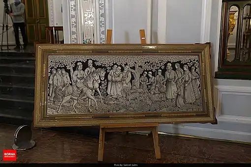 - «نگارگری بر روی فلز، هنر اصیل ایرانی». 55online.ir. دریافتشده در ۲۰۱۹-۰۷-۲۹.
