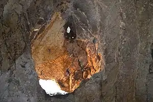 ![]() دهانه بالایی غار هوتو و سوراخی که در سقف آن قرار دارد. |
