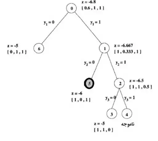 به همین ترتیب و با ساختن زیر شاخه و حل آنها، جواب بهینه به صورت (۲, ۲) با Z = ۶ خواهد بود.