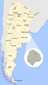 ![]() محل شهر خودمختار بوئنوس آیرس در نقشهٔ آرژانتین | |